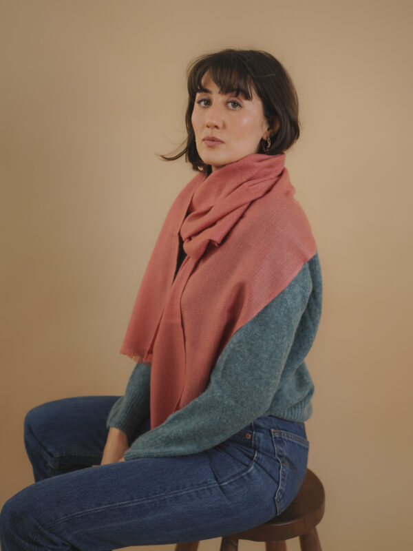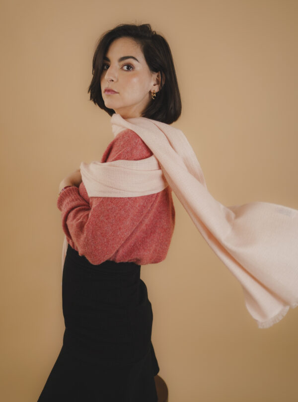 L’écharpe Saint-Hô est d’une douceur remarquable, à la fois légère et dotée d’un tissage serré qui lui donne un aspect de soie précieuse.
